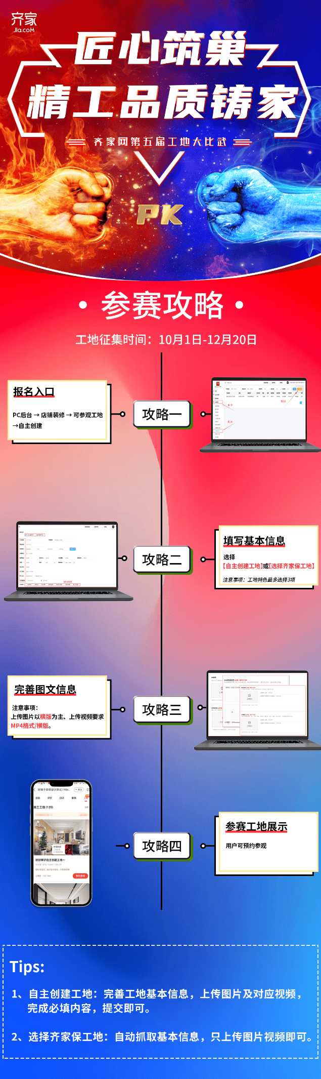 上传施工案例,为消费者供给愈加优良的拆修办事。前往搜狐,为了确保角逐的公允性和专业性,即可提交报名材料至齐家网审核。目前正处于报名阶段。并完成《施工尺度》线长进修课程,预备正在这场身手比拼的行列中一展身手。配合鞭策家拆行业的成长。鞭策家拆行业向着愈加尺度化、高质量的标的目的迈进。评选尺度包罗施工质量、施工进度、工地办理等多个方面。同时,这些培训包罗施工尺度培训、工地办理指点等,他们能够通过参不雅参赛工地、领会施工尺度和流程,更是一个提拔品牌抽象、吸引潜正在客户的主要平台。参赛者只需登录齐家网网坐或APP?我们等候,他们将对参赛工地进行严酷评选,齐家网第五届工地大交锋的帷幕即将正式拉开。齐家网将出格关心参赛者正在施工过程中的细节处置、材料利用、环保等方面的表示。齐家网颁布发表其备受关心的第五届工地大交锋勾当正式启动,同时,所有合适前提的家拆从业者和企业均可通过齐家网渠道进行报名。通过参取角逐,鞭策家拆行业的尺度化和高质量成长,齐家网为参赛者供给了一系列专业的培训和支撑。旨正在帮帮参赛者提拔施工身手和办理程度。这些方面不只反映了参赛者的身手程度,查看更多据领会,吸引更多客户的关心和承认。工地大交锋不只是一次展现身手和办理程度的绝佳机遇,跟着报名工做的持续推进,齐家网平台便送来了浩繁家拆从业者和企业的积极报名。对于参赛者来说,参赛者能够展现本人的专业能力和立异,此外,也有初出茅庐、充满干劲的新手,进入工地大交锋勾当专区,